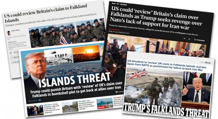 La posibilidad de que Estados Unidos revise su apoyo a la soberanía británica sobre las Malvinas tras declaraciones de Donald Trump generó una fuerte reacción en la prensa británica. Medios como The Sun, The Telegraph, Daily Mail, The Independent y The Guardian destacaron el impacto de esta advertencia, surgida a partir de un correo interno filtrado del Pentágono en el que se menciona la opción de castigar al Reino Unido por su postura sobre el conflicto con Irán.